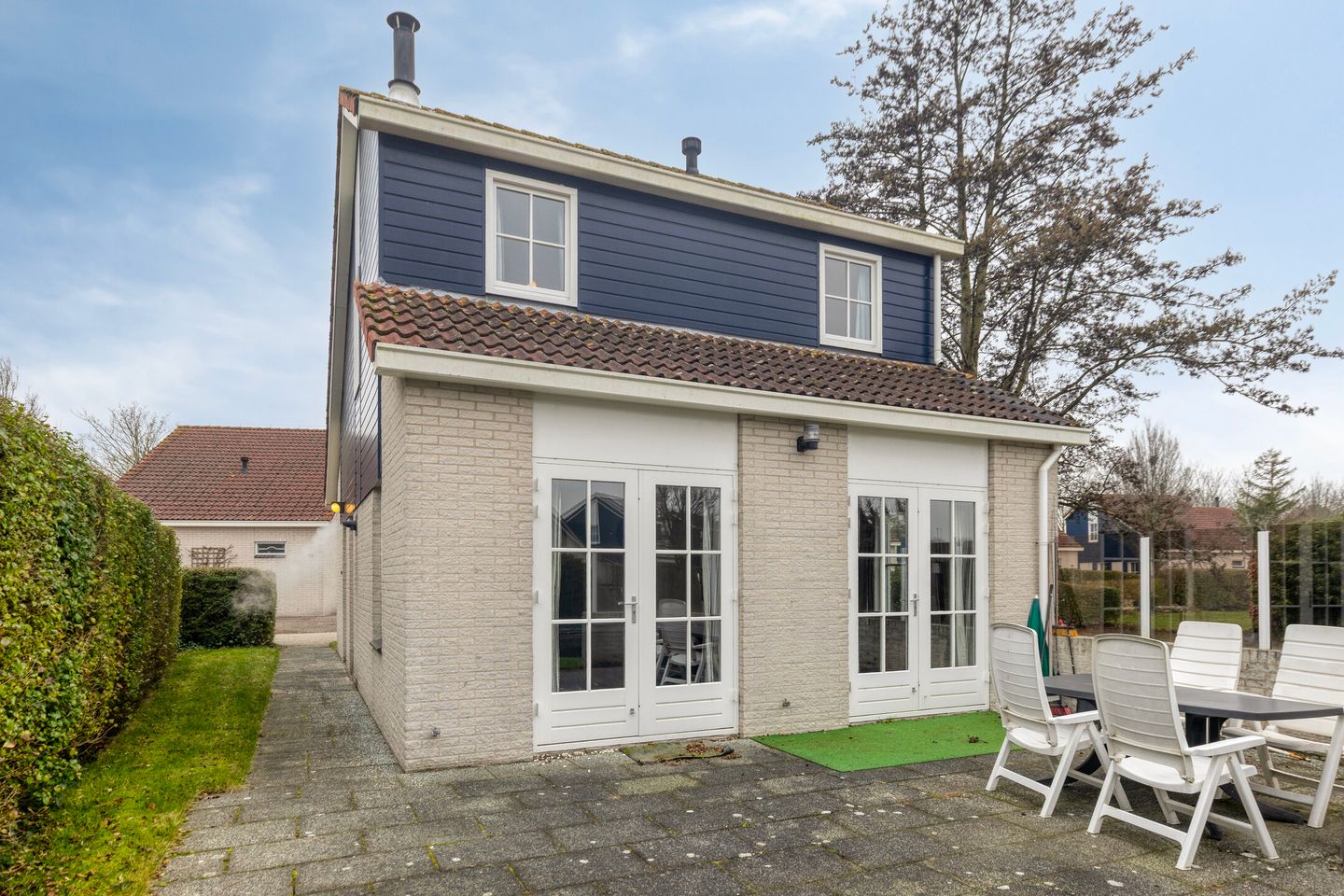 De tuin is gelegen op het noordoosten en biedt een heerlijke plek om in alle rust buiten te genieten. Dankzij de ligging aan het water en het omliggende groen ervaart u hier volop privacy en een echt vakantiegevoel. Aan de voorzijde van de woning is parkeergelegenheid op eigen terrein.