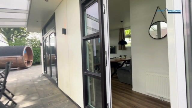 The property is privately located and features a beautifully landscaped garden where you can completely unwind. In the garden, you’ll find a sauna, jacuzzi, and outdoor shower, allowing you to enjoy wellness in the open air all year round. Two sun loungers and a parasol are available, perfect for ultimate relaxation. Thanks to the covered terrace, you can enjoy the outdoors in any weather. For extra convenience, the home also has a lockable storage room with water and electricity connections, ideal for bicycles, garden furniture, or a washing machine.