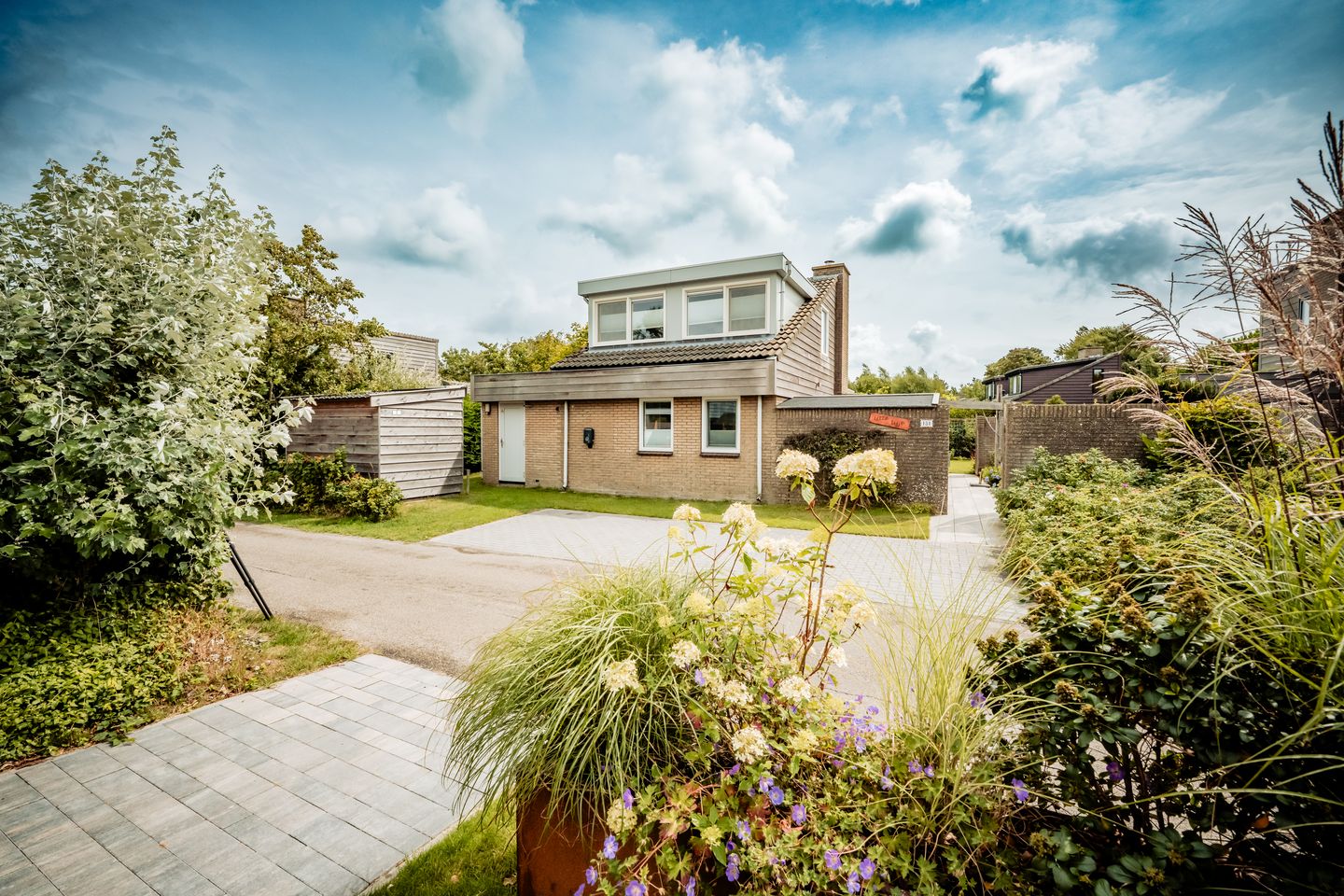 De zonnige patio op het zuiden is een heerlijke plek om te ontspannen, compleet met pergola voor schaduwrijke momenten. De fraai aangelegde tuin biedt privacy en ruimte, met een extra terras voor lange zomeravonden. Op eigen terrein is ruimte om te parkeren, inclusief een laadpunt voor een elektrische auto.