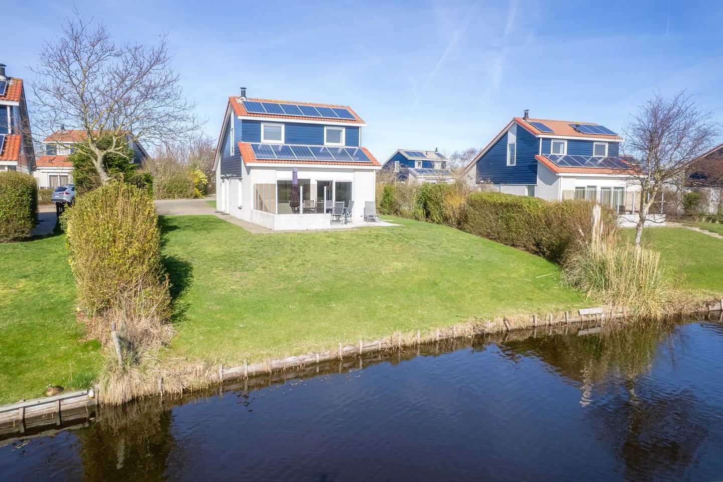 Rondom de woning treft u een verzorgd perceel met tuin en terras en bijzonder is natuurlijk de locatie aan het water! Op eigen terrein is er parkeergelegenheid voor meerdere voertuigen. Daarnaast is de woning voorzien van 12 zonnepanelen, wat bijdraagt aan een lagere energielast en een duurzamer gebruik.