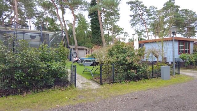 De recreatiewoning beschikt over een fraai aangelegde tuin met kunstgazon, sierbestrating en meerdere zitmogelijkheden. In de tuin bevindt zich tevens een vrijstaande houten berging met keralit bekleed en met buitenkraan, ideaal voor het opbergen van tuingereedschap en fietsen. Daarnaast is er een gezellige extra slaapplek in de tuin gecreëerd met een tweepersoonstent voorzien van vaste bedden, perfect voor logés of voor een unieke buitenbeleving. De recreatiewoning beschikt bovendien over een eigen parkeerplaats direct bij de recreatiewoning.