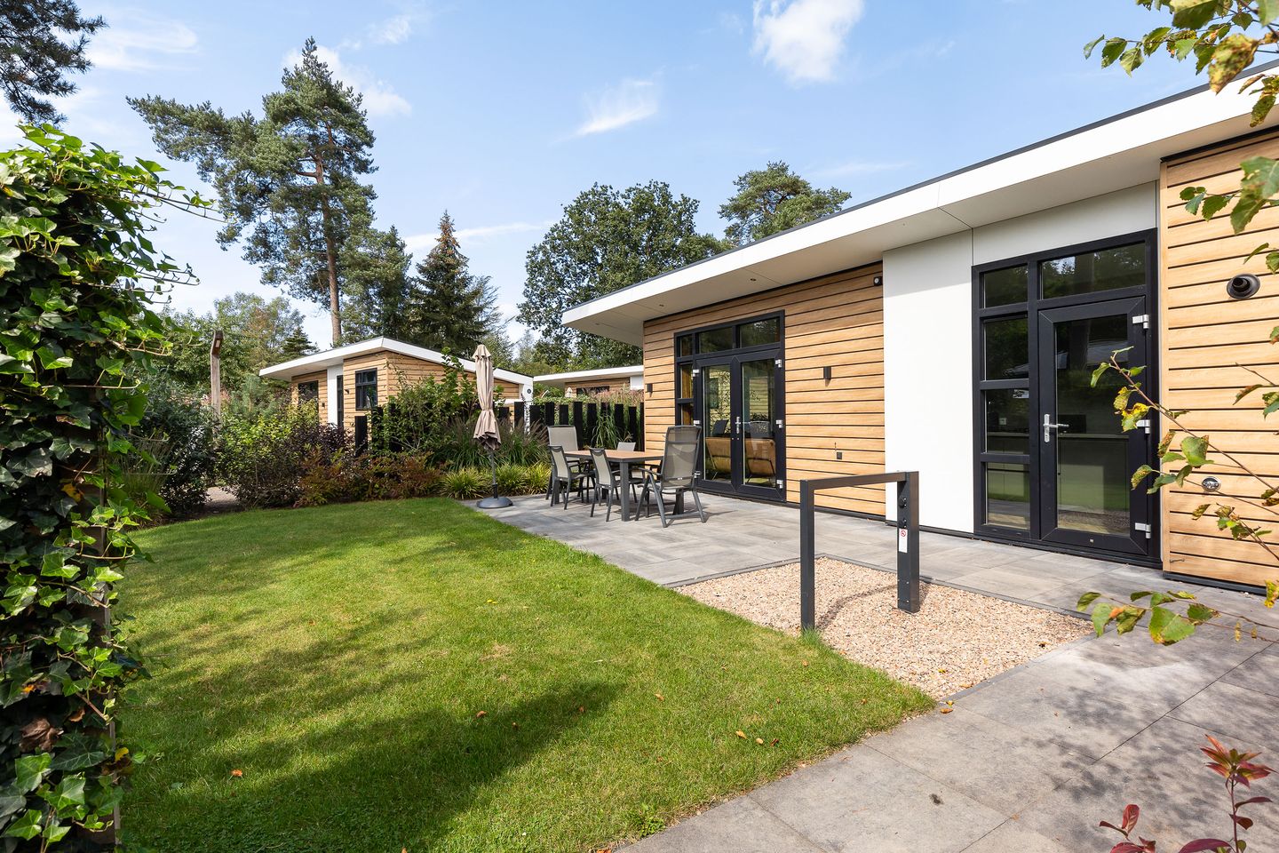 Eye-catcherModerne bungalow met veranda, sauna en parkeerplaats, op eigen grond