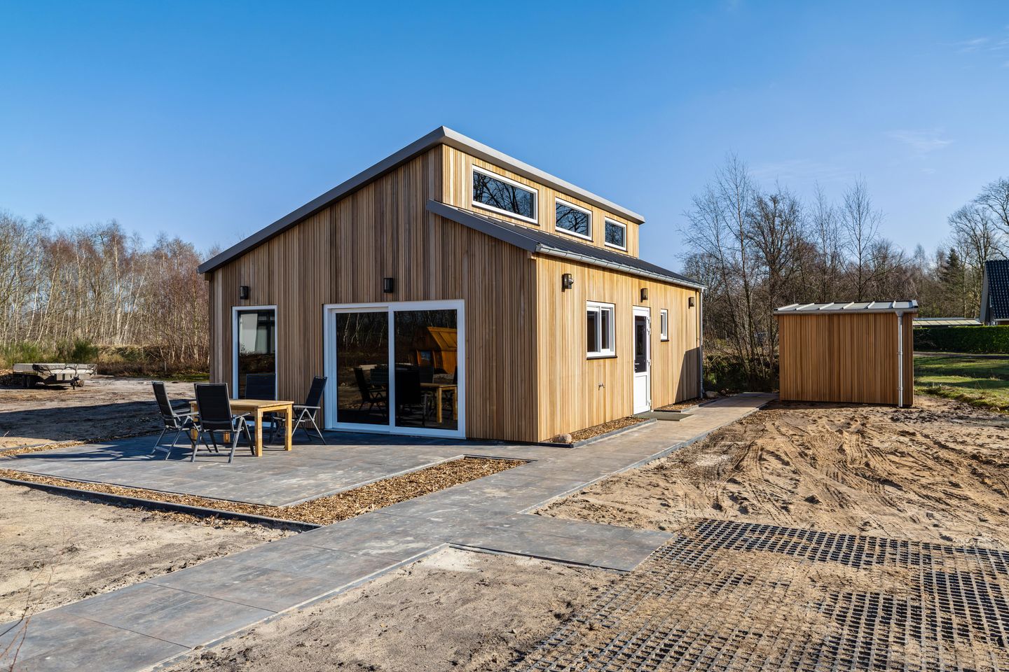 De recreatiewoning is duurzaam gebouwd in 2025/2026 en is zoals gezegd volledig geïsoleerd (energielabel A). De woning is voorzien van kunststof kozijnen en deuren met triple beglazing (zonwerend). Verwarming en koeling wordt verkregen middels het split-aircosysteem, warm water middels een warmtepomp boiler.