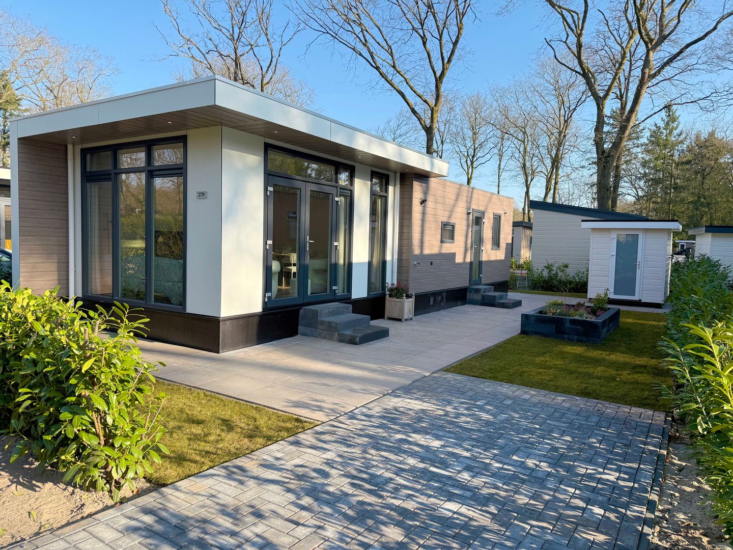 De woning heeft een moderne en onderhoudsvriendelijke afwerking en grote raampartijen zorgen voor een lichte en open sfeer. De ruime tuin is gunstig gelegen op het zuiden en biedt volop privacy. Daarnaast beschikt de woning over een eigen parkeerplaats direct naast de woning. Gelegen op een gezellige familiecamping met diverse faciliteiten, is dit de ideale plek voor gezinnen met kinderen of rustzoekers.