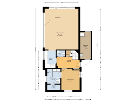 - 60 m² (5.00 metre deep and 12.00 metre wide)