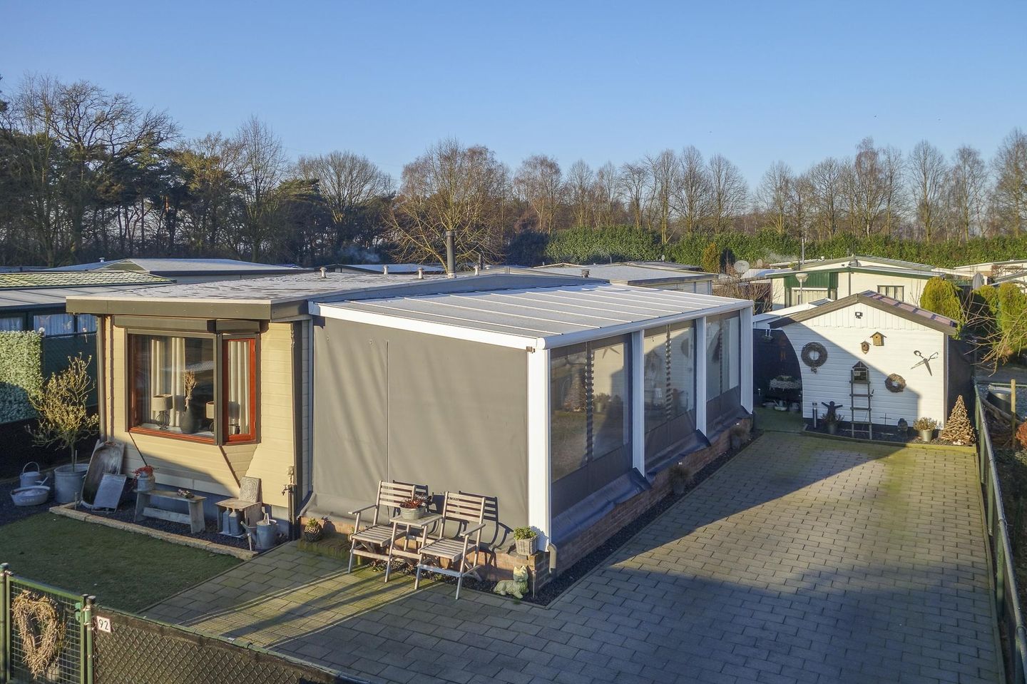 • Chalet met dichte overkapping is in een keurige staat van onderhoud