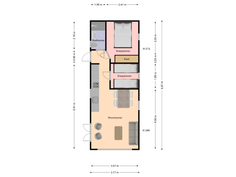 • Twee Comfortabele Slaapkamers: Het chalet beschikt over twee slaapkamers. De ouderslaapkamer is uitgerust met een praktische ingebouwde kast met schuifdeuren, die zorgt voor voldoende opbergruimte. De tweede slaapkamer biedt comfortabele slaapplaatsen voor twee extra personen.
