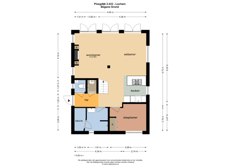 Begane grond: entree, hal met vaste kast met wasmachine- en cv-opstelplaats. Toilet met wandcloset en fontein. 2-Persoons slaapkamer, badkamer in moderne kleurstelling met breed wastafelmeubel, inloopdouche en sauna.