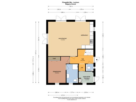 Begane grond: entree, hal, berging met wasmachine-aansluiting welke ook van buitenaf toegankelijk is. Toilet met wandcloset en fontein. 1 x 2-persoons slaapkamer met vaste kasten en een directe toegang tot een geheel betegelde badkamer met wastafelmeubel en douche en wandcloset.