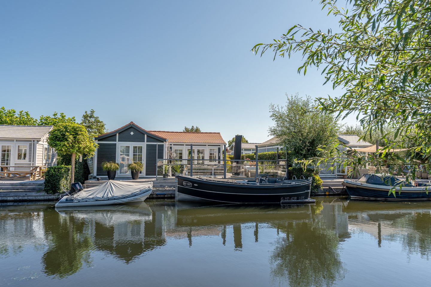 Recreatiewoning: Entree, sfeervolle en ruime woon-/eetkamer met openslaande deuren naar de verschillende terrassen, zijramen, airco en een luxe open keuken voorzien van kookeiland, veel kastruimte, een Atag inductie kookplaat, wijnklimaatkast, vaatwasser, oven en Severin koel-/vriescombinatie. Hoofdslaapkamer met openslaande deuren naar een hardhouten terras aan het water, airco en een vaste kast met boileropstelling en meterkast. Moderne badkamer met wastafelmeubel, zwevend toilet en douchecabine. De recreatiewoning is voorzien van een pvc vloer met infrarood vloerverwarming die o.a. per app is in te stellen.
