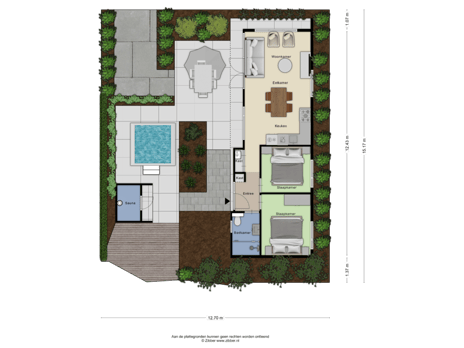 De tuin rondom de woning is groen, ruim en biedt veel privacy. Hier vind je een fijn terras om in de zon of schaduw te genieten van een drankje of diner. Het absolute hoogtepunt is de wellness: een luxe jacuzzi en een eigen sauna maken dit tot een plek waar je volledig kunt ontspannen.