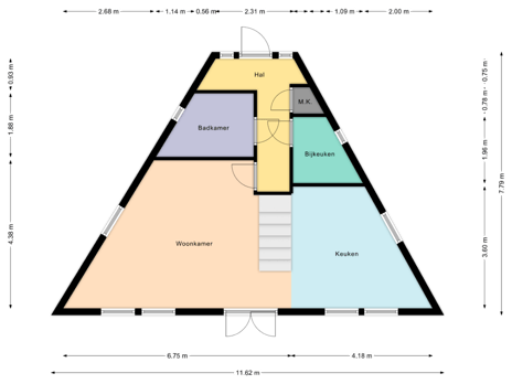 Bijkeuken ca. 3 m² (alwaar cv-installatie en aansluitingen voor was- en droogmachine)