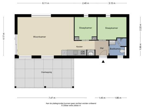 U komt de woning binnen in een open ruimte met toegang tot de twee slaapkamers, badkamer en living.