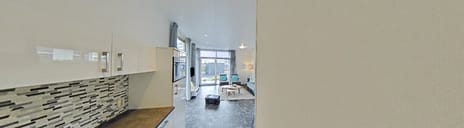 Zodra u de woonkamer betreedt valt gelijk op dat de toepassing van de vele grote raampartijen een uitstekende keuze is geweest. Vanuit deze ruimte heeft u zicht over uw terras en kunt u genieten van het uitzicht. Vanuit de woonkamer stapt u zo het terras op waar u plaats kunt nemen onder de grote aangebouwde veranda. Direct grenzend aan de woonkamer treft u de keuken welke een moderne uitstraling heeft.