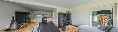 De moderne open keuken, staat in een wandopstelling en beschikt over diverse apparatuur, zoals een gaskookplaat, oven, vaatwasser en een koel-vriescombinatie. Er is ruimte genoeg voor een flinke eettafel in de eethoek. Dit zorgt voor een fijne sfeer in de woning!
