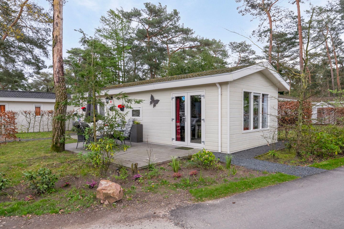 Het vakantiechalet staat op een ruime kavel, met parkeergelegenheid op het grind en een hoge beukenhaag als erfafscheiding. Op het terras staat een loungeset en een tafel met stoelen, met plek voor 4 personen. In de houten berging is ruimte om spullen op te slaan en het gazon is een fijne speelplek voor kinderen.