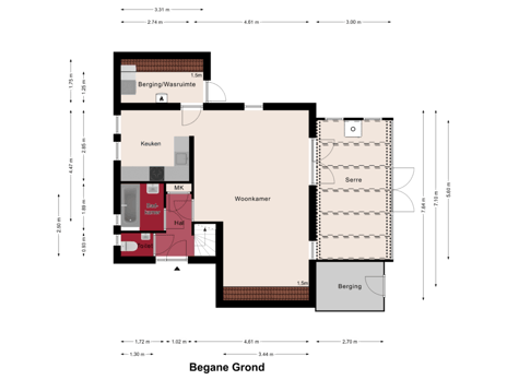 De hal/entree biedt toegang tot het toilet met fonteintje, de meterkast, de trap naar de eerste verdieping en de volledig betegelde gelijkvloerse badkamer, die is uitgerust met een ligbad/douche combinatie, een wastafel met meubel en een radiator. De woonkamer is licht en ruim en biedt toegang tot de keuken, die is voorzien van een mooie combinatie met een inductiekookplaat, afzuigkap, oven, magnetron, koel-/vriescombinatie en een vaatwasser. Vanuit de keuken is er ook toegang tot de betegelde bijkeuken/berging, waar de aansluitingen voor de wasmachine en droger en de cv-combiketel (AGPO, ca. 1999, eigendom) zich bevinden. De bijkeuken/berging is eveneens vanuit de tuin bereikbaar. Via openslaande deuren in de woonkamer komt u in een ruime tuinkamer met een houtkachel en prachtig uitzicht op de tuin. De gehele begane grond is voorzien van een tegelvloer.