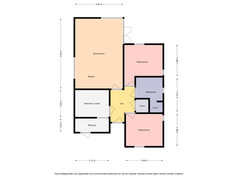 Indeling: hal/entree, toilet, ruime woonkamer met riante raampartij en openslaande deuren naar terras en tuin, open keuken voorzien van hedendaagse inbouwapparatuur, twee slaapkamers en een badkamer met whirlpool, separate douche en wastafel. Luxe vertrek met sauna. Van zowel binnen- als buitenaf toegankelijk: berging met was/droogcombinatie, meterkast.