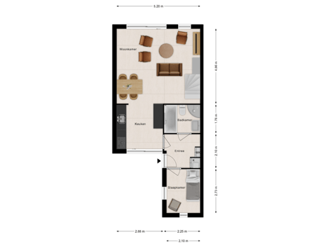 Op de begane grond bevindt zich verder een slaapkamer met stapelbed, ideaal voor kinderen of logees. De badkamer op deze verdieping is fris en verzorgd, uitgerust met een douche, toilet en wastafel. Daarnaast is er een praktische bergkast en een meterruimte bij de entree.