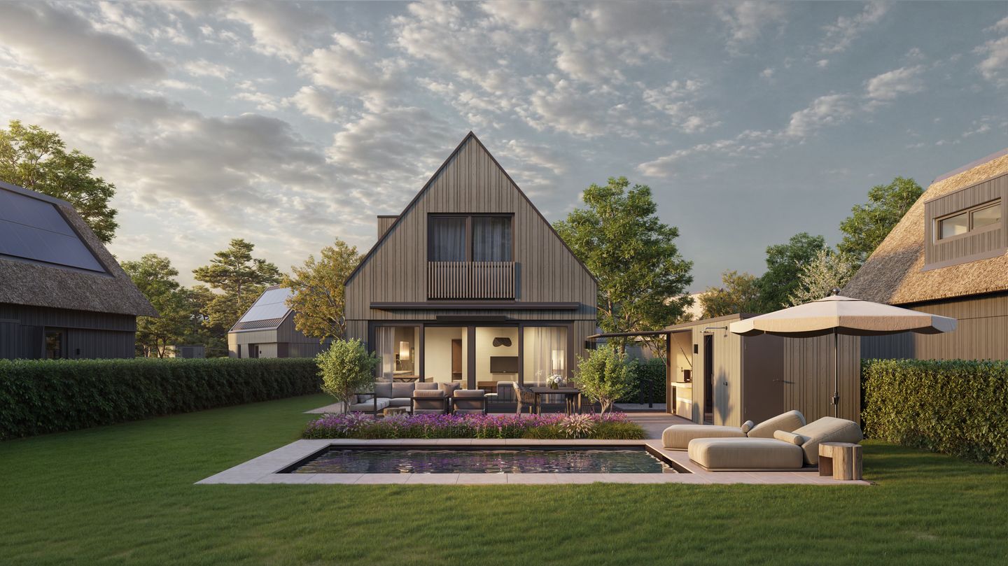 Wat deze plek echt uniek maakt? Aan de ene kant loopt u zo het idyllische dorp Rolde in, vol schilderachtige bezienswaardigheden, cafés en winkels. En aan de andere kant bevindt zich het schitterende natuurgebied Balloërveld. Hier stralen 40 moderne villa’s straks de rust uit van de bosrijke omgeving. Het all year privé zwembad, de sauna en de buitenkeuken beantwoorden aan de behoefte om zich terug te trekken. Als luxe uitvalsbasis voor levensgenieters, rustzoekers en mensen die graag in verbinding staan met de natuur, biedt dit project in Drenthe de kans om een duurzame investering te doen die vrije tijd een nieuwe dimensie geeft.