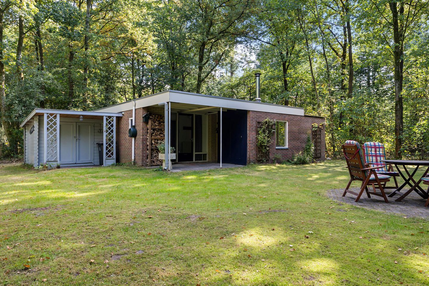 Bungalow Janke is een gezellige, vrijstaande 4-persoons recreatiebungalow op een ruim perceel van 438 m2. De bungalow ligt beschut tussen de bomen, wat zorgt voor volop privacy en een heerlijk bosgevoel. Of je nu zelf van deze plek wilt genieten of (gedeeltelijk) wilt verhuren, het is allebei mogelijk.