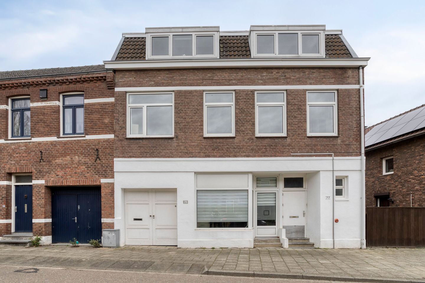 De woningen zijn traditioneel gebouwd in 1920, de gevels zijn opgetrokken in metselwerk, waar de voorgevel van de begane grond gestucadoord en geschilderd is. Het dak is gedeeltelijk bedekt met pannen en gedeeltelijk bedekt met bitumineuze dakbedekking. De begane grond vloer is uitgevoerd in beton, waar de verdiepingsvloeren van zowel de eerste als de tweede verdieping zijn uitgevoerd in hout. De kozijnen zijn grotendeels gemaakt van kunststof en voorzien van isolerende beglazing. Het appartement op de begane grond heeft één houten kozijn dat is voorzien van enkel glas. Het warm water en de verwarming wordt verzorgd door de Remeha cv-ketel welke ook in eigendom is. De twee woningen zijn voornamelijk vanuit huisnummer 77 in elkaar verweven. Hier bestaat de woning uit drie woonlagen: de begane grond, de eerste verdieping en de tweede verdieping. Huisnummer 79 is een complete benedenwoning welke alleen uit een begane grond bestaat.
