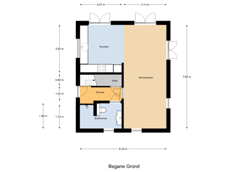 Zodra u binnenkomt ziet u gelijk de Oostenrijkse stijl terug met de nette houten afwerking. Entree geeft toegang tot de badkamer, woonkamer/keuken en de hal met trapopgang naar de eerste verdieping.