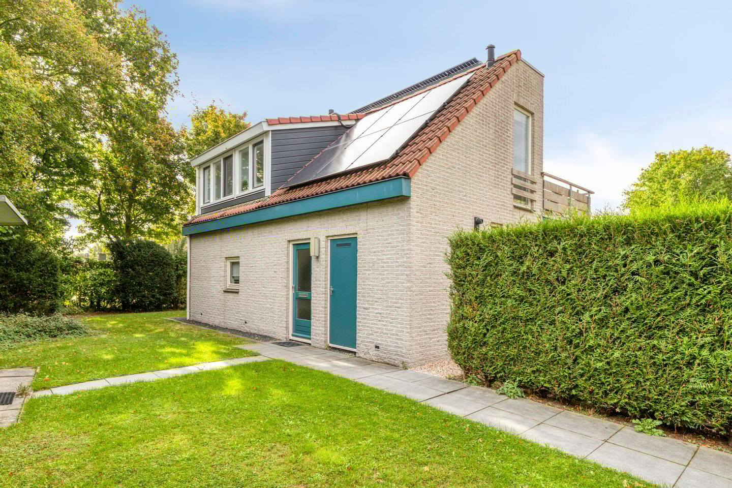 De woning is geschikt voor zes personen, heeft drie slaapkamers, een ruime veranda en een gezellige woonkamer met gashaard. De groene, omsloten tuin met eigen parkeergelegenheid biedt veel privacy, terwijl de ronde houten buitensauna en het dakterras met zithoek op de eerste verdieping zorgen voor extra luxe en ultieme ontspanning. Dankzij de negen zonnepanelen en de zonneboiler is de woning bovendien energiezuinig.
