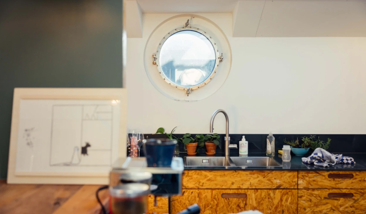 Mirthe: ‘Al speelt vocht bij ons wel een grotere rol. Bij een stenen huis kan vocht wegzakken via de vloer, bij een boot gaat dat niet. Daarom moeten we altijd ventileren. De ventilatie in de badkamer en de afzuigkap moet ook extra lang aan staan, anders krijg je last van schimmel. Om nog maar te zwijgen over de vele spinnen.’