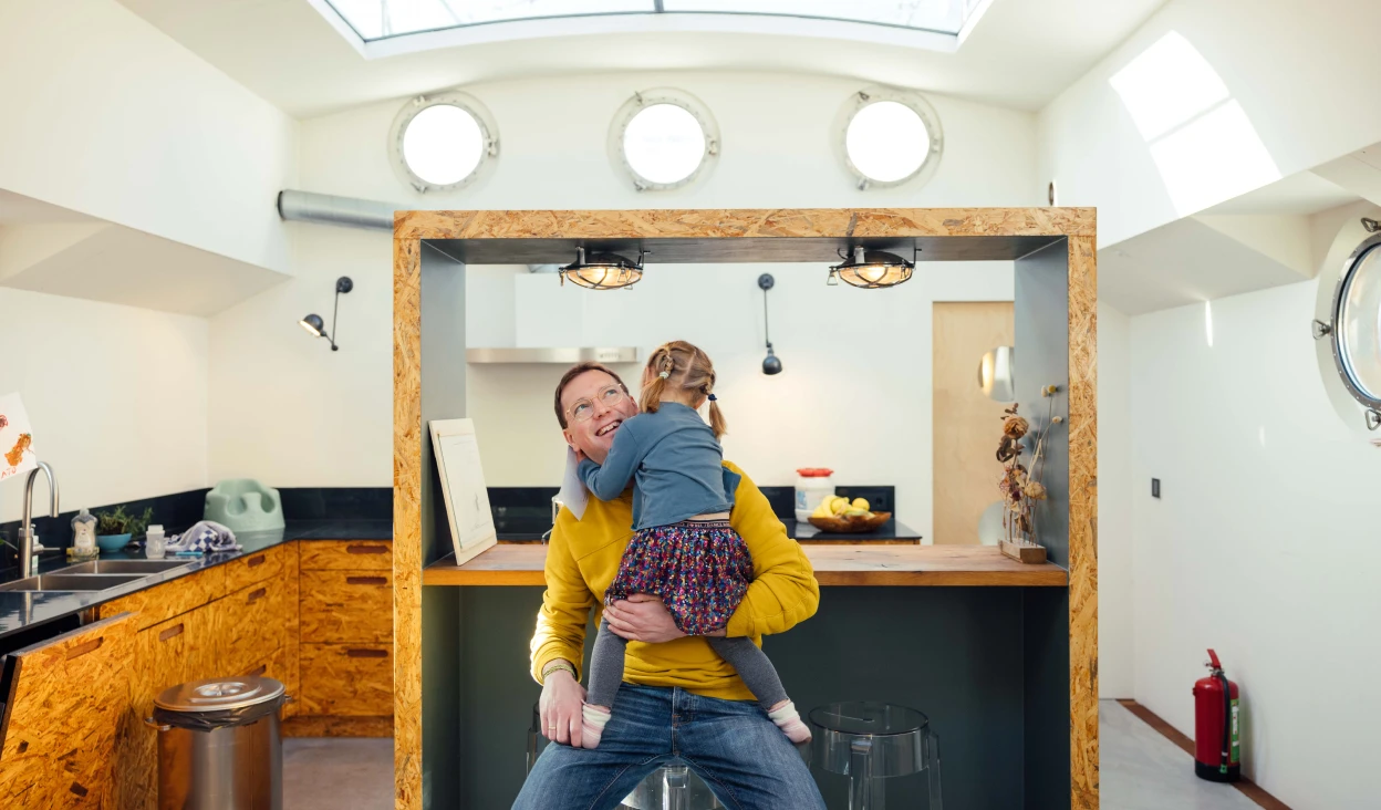 Friso: ‘Daar staat tegenover dat we vrijstaand wonen in de stad. Met een geweldig uitzicht en veel buitenruimte. En dat is zeker in Amsterdam best bijzonder. We kunnen in de woonkamer een feestje voor veertig man geven, onze dochter kan op zondagmorgen om zes uur met haar driewieler door het huis scheuren, niemand die het hoort.’ Mirthe: ‘Tegelijkertijd voelt het alsof we hier in een buurtje wonen. We hebben ontzettend leuke bootburen en borrelen vaak bij elkaar op het dek of aan de kade.’