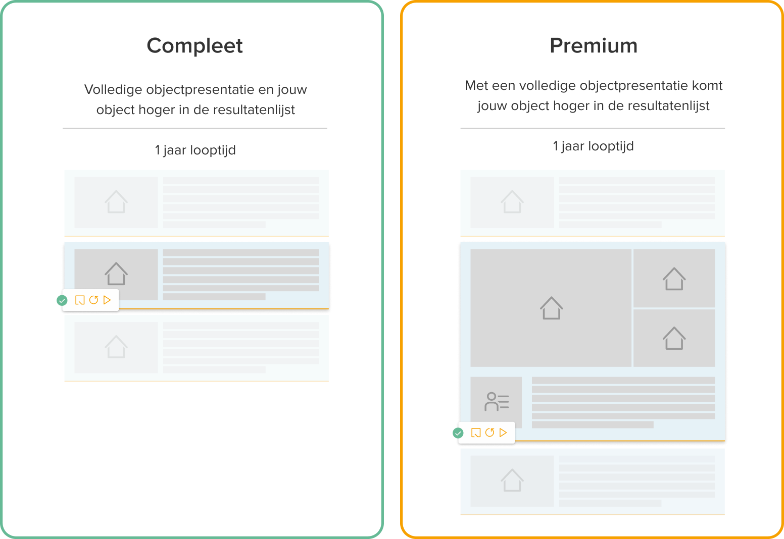 Voor het plaatsen van jouw objecten kies je straks uit één van onze twee pakketten: Funda Compleet of Funda Premium. Bekijk nu alvast de voordelen per pakket.