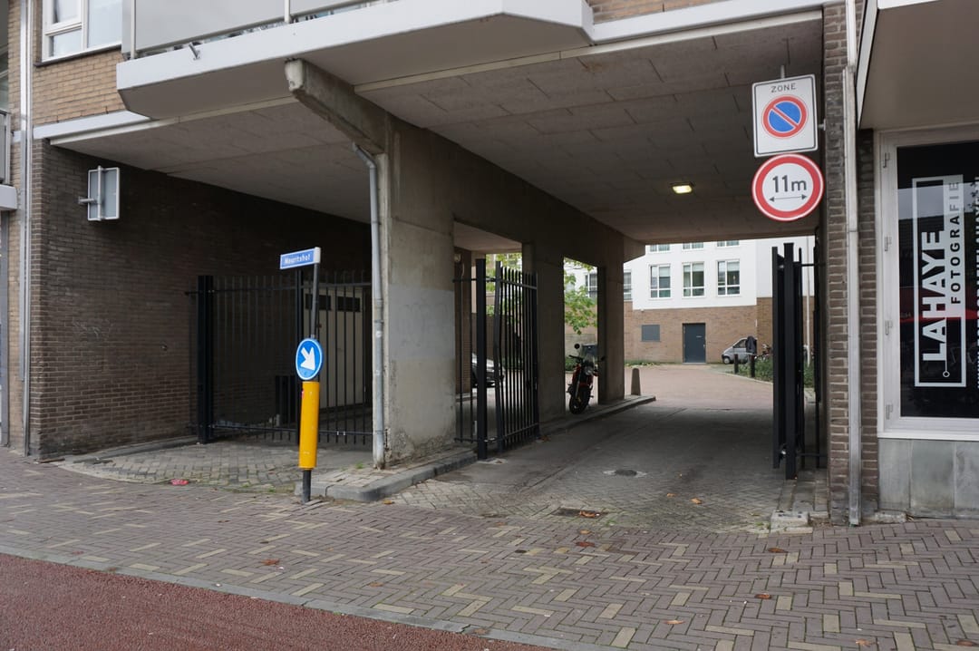 De ingang van de parkeerkelder is gelegen tussen de Cool blue winkel en de ingang van garage Koningsplein. Deze ingang is afgesloten middels een automatisch hekwerk zodat de kelder enkel toegankelijk is voor geautoriseerde personen.