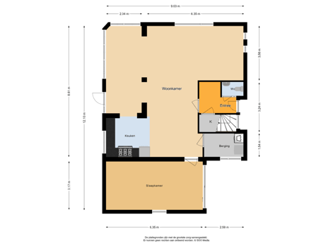 - 81 m² (9,50 meter diep en 8,50 meter breed)