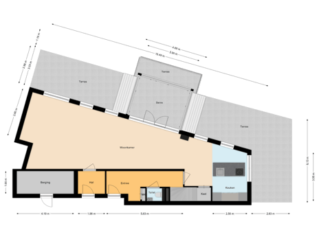 - 72 m² (3,20 meter diep en 22,50 meter breed)