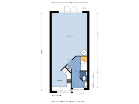 - Entree met meterkast, trapopgang (incl. trapkast) en toiletruimte;