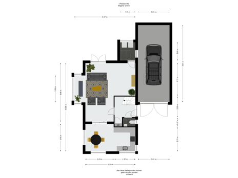 In de voor-, zij- en achtertuin zie je bestrating, grind, hagen en beplanting die merendeels groenblijvend is. Aan de achterzijde is, over de hele breedte van het huis, een terras gemaakt. Zo is er genoeg plek voor een loungeset, voor een borrel, en een tafel met stoelen om buiten te eten. De tuin grenst aan de achterzijde aan een rustige straat, zonder doorgaand verkeer.