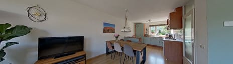 Aan de voorzijde van de woning bevindt zich de ruime keuken, die dankzij de lichtgroene en houtkleurige boven- en onderkasten een frisse en warme uitstraling heeft. De keuken is van alle gemakken voorzien: een gasfornuis, afzuigkap, koel-vriescombinatie (2021) en vaatwasser (2021). Vanuit de keuken heeft u bovendien fijn uitzicht op de voortuin, wat zorgt voor een rustige en prettige sfeer terwijl u kookt.