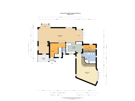 Bij binnenkomst word je direct verwelkomd in de prachtige, ruime entreehal met garderobe, trapopgang, de toegang naar de kelder en het toilet. De hal is een stijlvolle binnenkomer en geeft meteen een indruk van de sfeer en het karakter van de woning. De royale woonkamer met erker is een heerlijke leefruimte waar licht, ruimte en warmte samenkomen. De fraaie houten visgraatvloer, de haard en de hoge plafonds zorgen voor een uitnodigende, gezellige sfeer. Dankzij de ramen rondom en de openslaande deuren naar het terras bij de achtertuin vloeien binnen en buiten moeiteloos in elkaar over. De open keuken met een bar gedeelte is modern, functioneel en compleet ingericht met uitstekende inbouwapparatuur: een inductiekookplaat, vaatwasser, afzuigkap, oven, magnetron, warmhoudlade, koel-vriescombinatie en een Quooker-kraan. In de uitbouw op de begane grond is een royale tuingerichte kamer, die ideaal is als thuiswerkplek, speelkamer, hobbyruimte, praktijk aan huis of slaapkamer op de begane grond. Daarnaast is er een luxe badkamer met ligbad, wastafel, aparte doucheruimte en toilet. Dit maakt de woning toekomstbestendig. De bijkeuken met deur naar de achtertuin heeft veel kastruimte en hier kunnen eventueel ook de wasmachine en droger worden opgesteld.