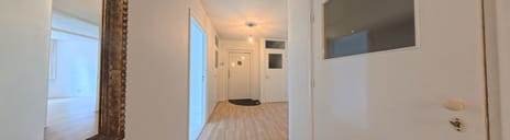 Je betreedt het complex middels de centrale opgang. Vanuit hier neem je de trap naar boven. Het appartement zelf ligt op de tweede verdieping: dus geen bovenburen, wel rustig gelegen.