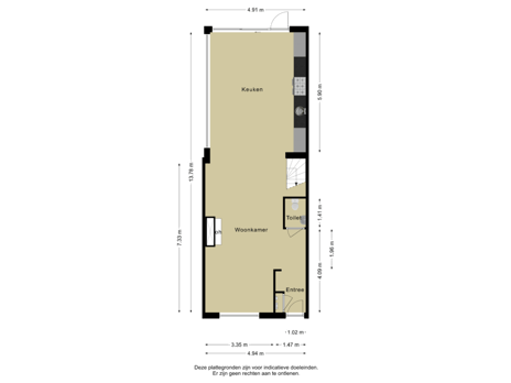 - 95 m² (18,00 meter diep en 5,40 meter breed)