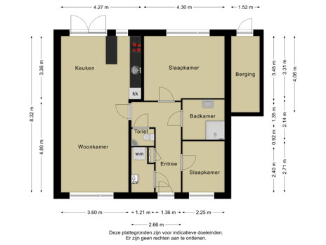 - 44 m² (11,00 meter diep en 4,00 meter breed)