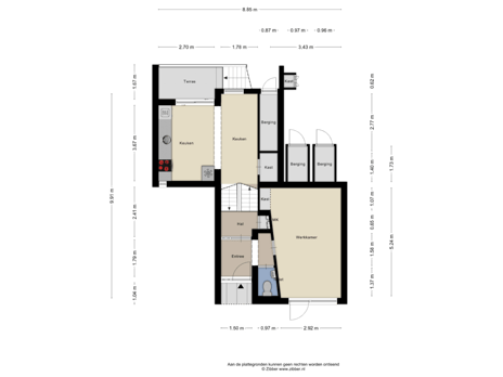 - 110 m² (9,50 meter diep en 10,00 meter breed)