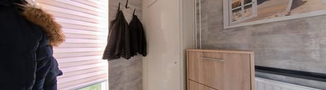 Entree/hal met de meterkast, het toilet, de trapopgang en toegang tot de woonkamer. De hal is afgewerkt met een laminaatvloer die doorloopt in de woonkamer en keuken.