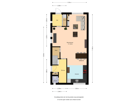 - 153 m² (11,36 meter diep en 13,50 meter breed)