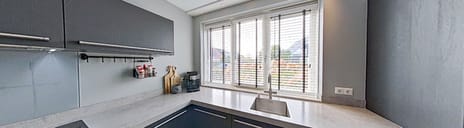 Via de zijkant van de woning bereik je de voordeur. De ontvangsthal biedt toegang tot de meterkast, een moderne toiletruimte met wastafel en de trapopgang naar de eerste verdieping. De ruime, tuingerichte woonkamer is licht en sfeervol dankzij de dubbele tuindeuren en de fijne verbinding met buiten. De open keuken aan de voorzijde is uitgevoerd in een hoekopstelling en voorzien van alle gemakken: een inductiekookplaat, afzuigkap, heteluchtoven, Quooker, vaatwasser, koelkast en vriezer. De inbouwspots zorgen hier voor een strakke, eigentijdse uitstraling. Het keukenraam is voorzien van een screen tegen het zonlicht.