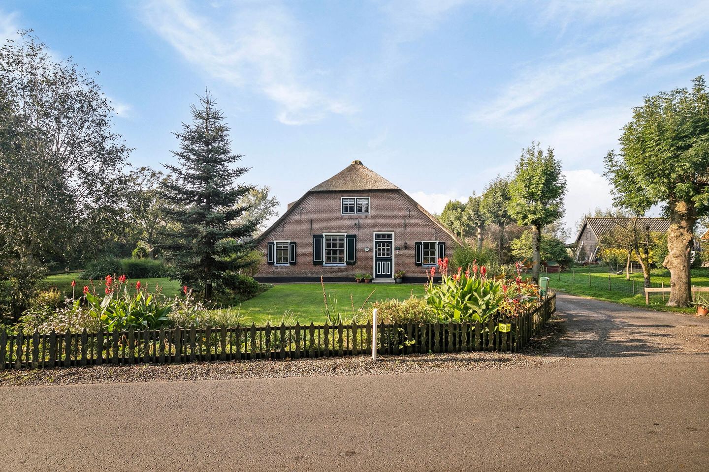 Gelegen aan een goed onderhouden weg ligt deze charmante, vrijstaande rietgedekte woonboerderij met veel oude details en een goed verzorgde tuin. Via een verharde oprit heeft u toegang tot het aantrekkelijke perceel van maar liefst 4.862 m², dat volop privacy en ruimte biedt.