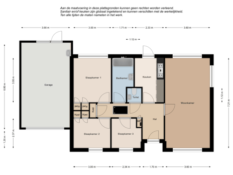 Vanuit hal eveneens toegang tot keuken, badkamer, toilet en 3 slaapkamers.