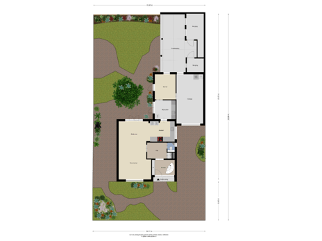 De zonnige achtertuin is fraai aangelegd met Waaltjes-straatwerk, zonneterras, gazon, borders en diverse bomen (o.a. Moerbei), planten en struiken. Aansluitend aan de uitbouw is een grote veranda geplaatst. Deze veranda biedt ruimte voor het plaatsen van een groot loungeset en vanuit de veranda is mooi zicht over de tuin. In deze veranda zijn ook 2 separate bergingen (circa 12 en 5 m2) aanwezig. De verandavloer is afgewerkt met vlonderplanken en voorzien van 2 elektrisch bedienbare screens. Ook is er elektra in de veranda aanwezig. Naast de woning is een fraaie zijtuin met looppoort naar de voortuin. Door deze looppoort is de zij- en achtertuin afsluitbaar. Ook de voortuin is fraai aangelegd met mooi straatwerk, borders en groene hagen. Voor de garage is een diepe oprit met parkeergelegenheid voor meerdere auto's op eigen terrein.