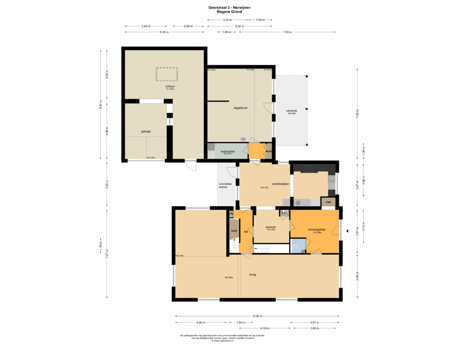 De garage en schuur staan in open verbinding met elkaar en zijn praktisch voorzien van een betonnen vloer, elektra en tl-verlichting. Vanaf de oprit heb je via een metalen kanteldeur toegang tot de garage en via een gewone deur tot de schuur.