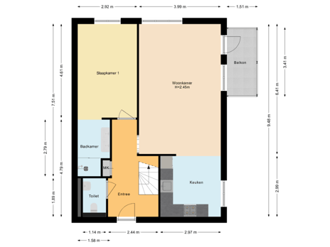 - 5 m² (1,50 meter diep en 3,40 meter breed)